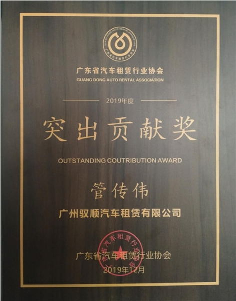 广东省汽车租赁行业协会2019年度突出贡献奖 |